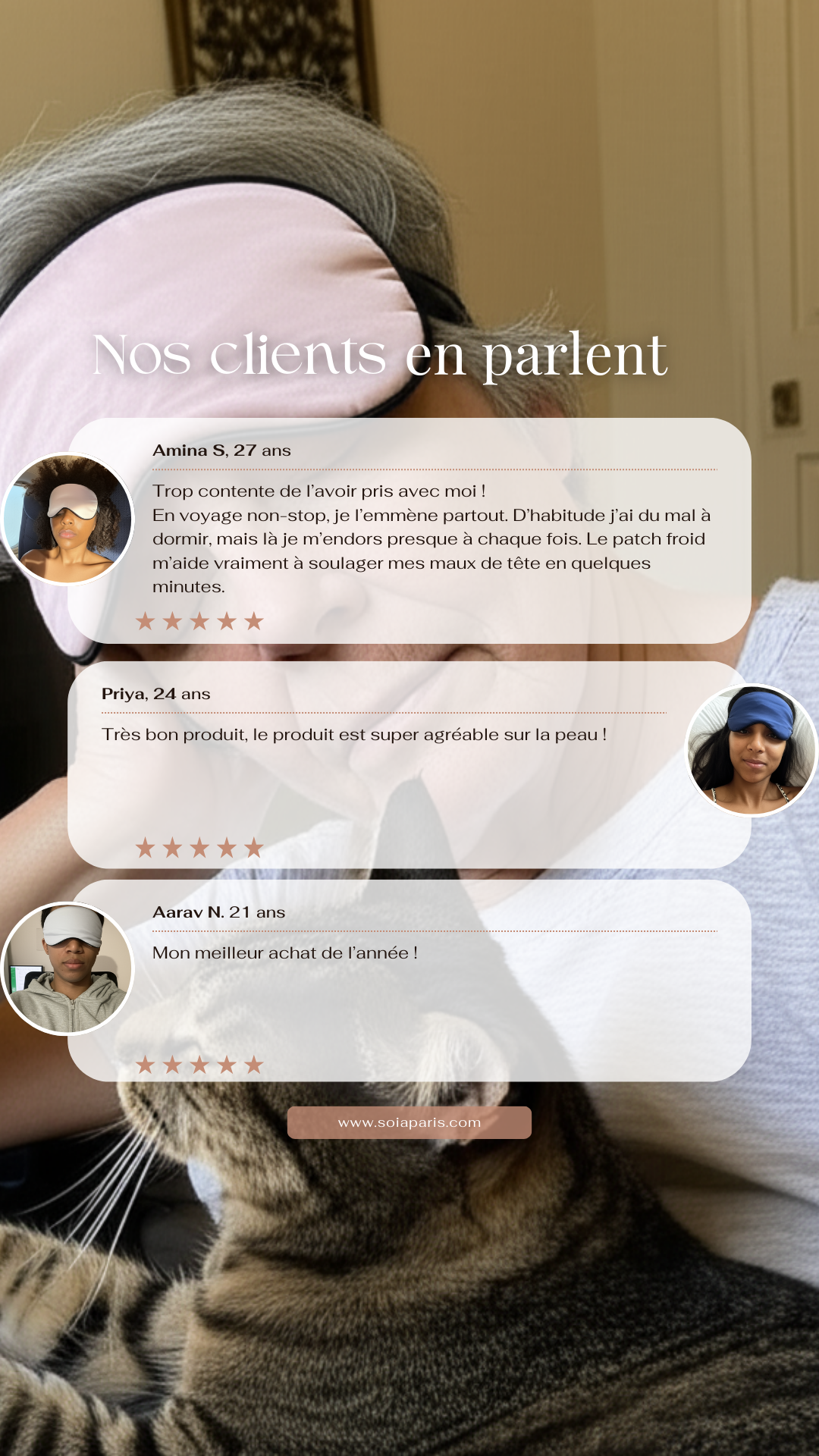 Avec les études, je suis souvent stressée et je dors mal. Depuis que j’ai ce masque, je prends enfin un moment pour moi. Je le mets le soir ou en journée pour me détendre — ça m’aide vraiment à relâcher la pression.
